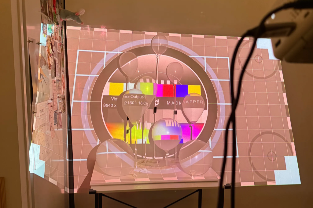 I processed the memory images using CapCut, then imported all the video assets into MadMapper. Each visual was masked according to the shape of the balloons, and finally projected onto their surfaces.
